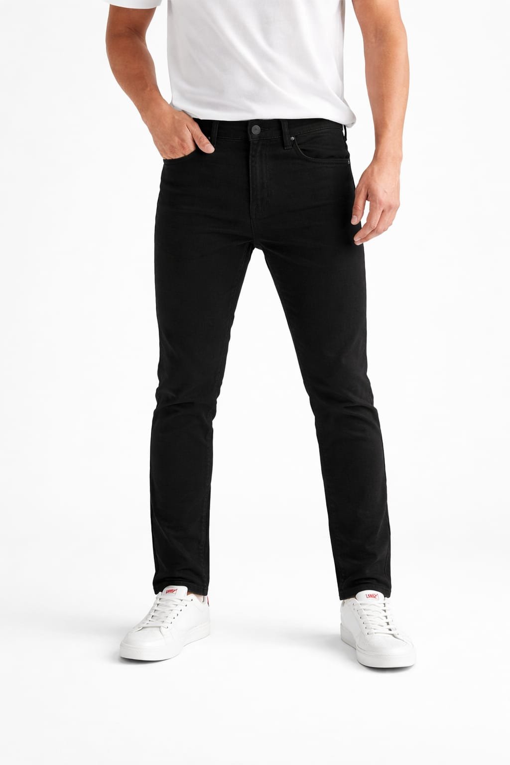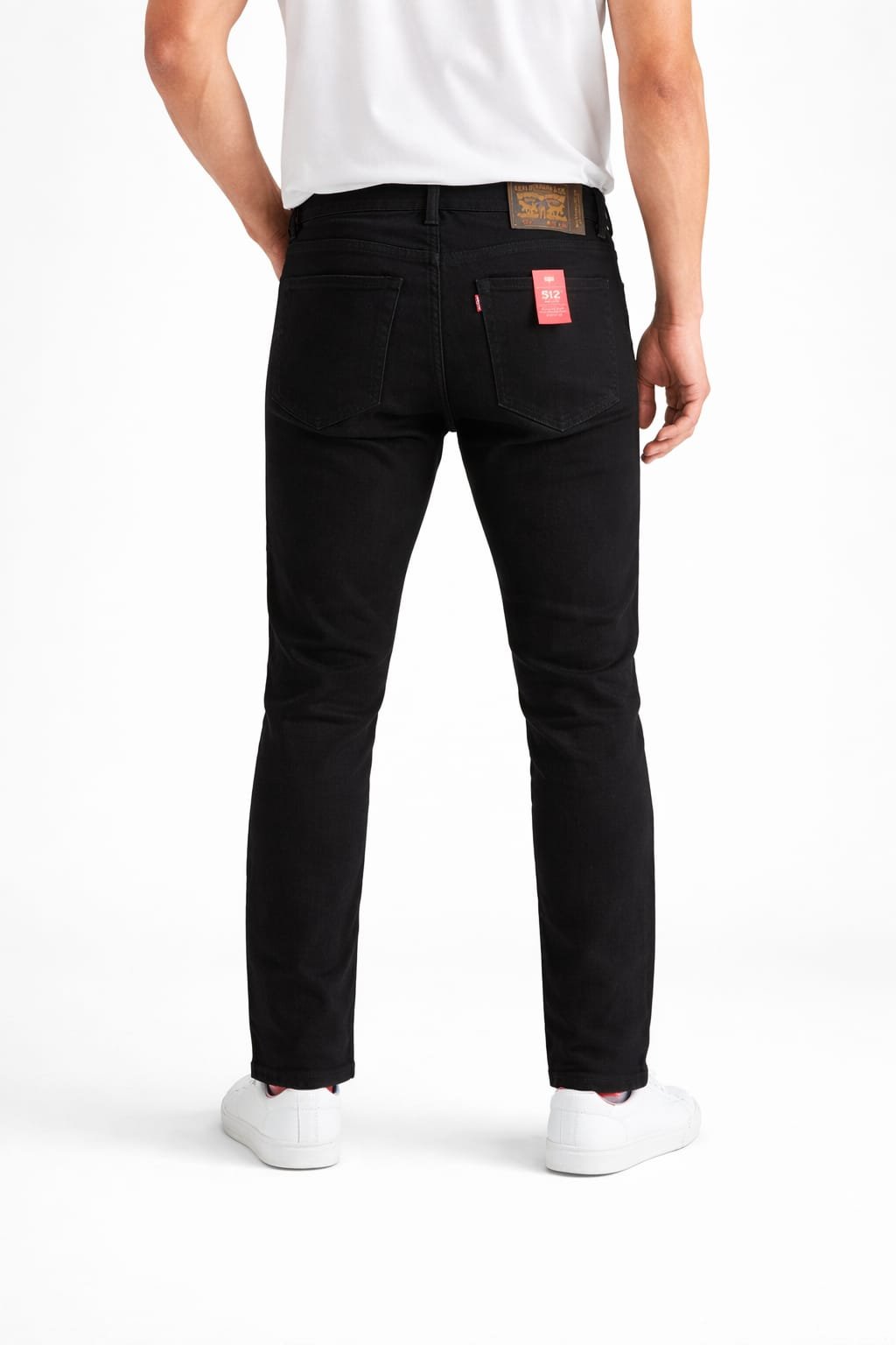 - Classic five-pocket construction complemented by a comfort-fit waist label.